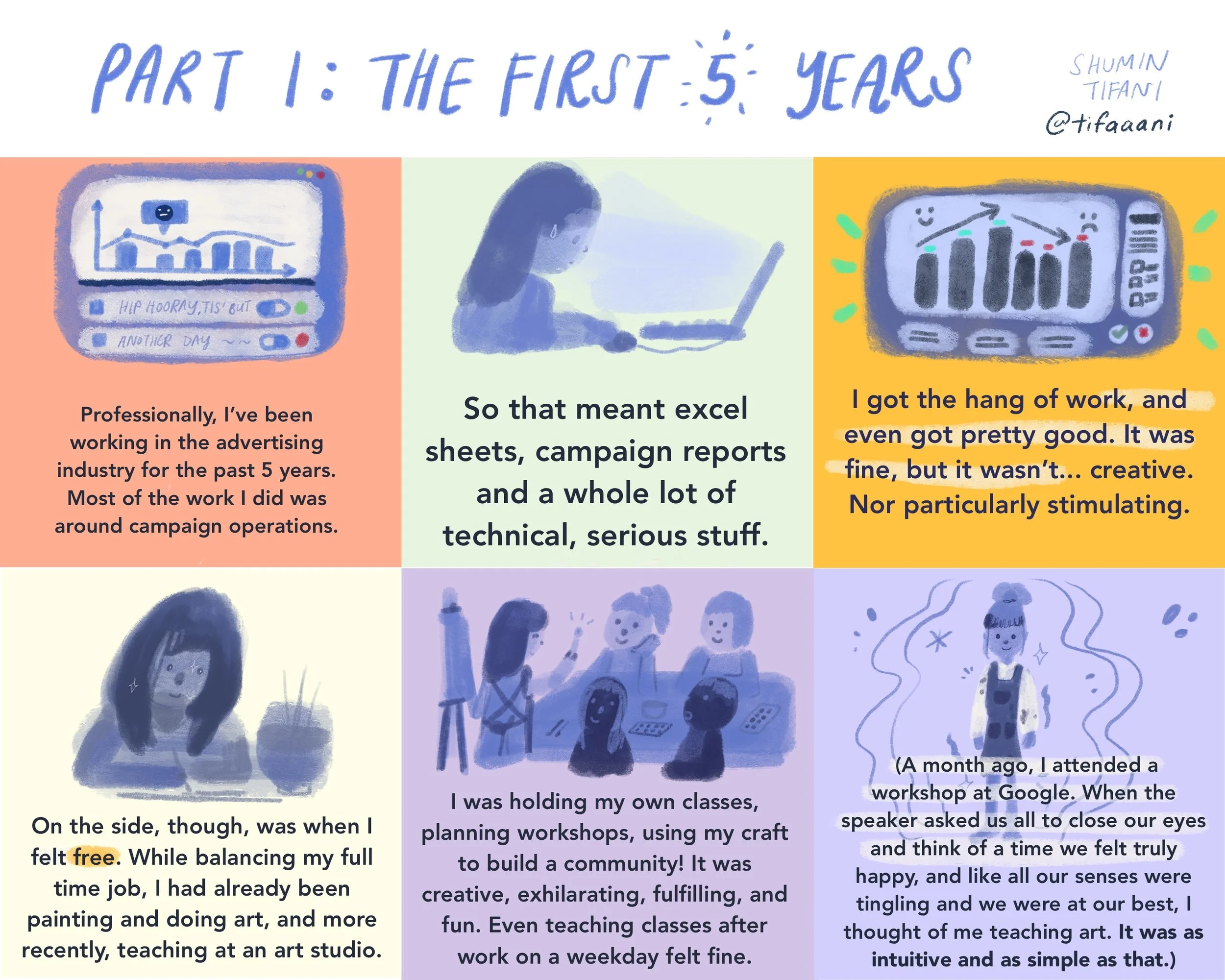 The first five years is about me, jumping straight into advertising after graduating, navigating the corporate agency world, exploring new frontiers, making friends, nEtWoRKinG, delivering campaigns, and so on. I matured a lot, and stopped seeing the world through rose-colored lenses, which can often happen when one is stuck with an idealized perception of the world, having not actually stepped into the weeds.